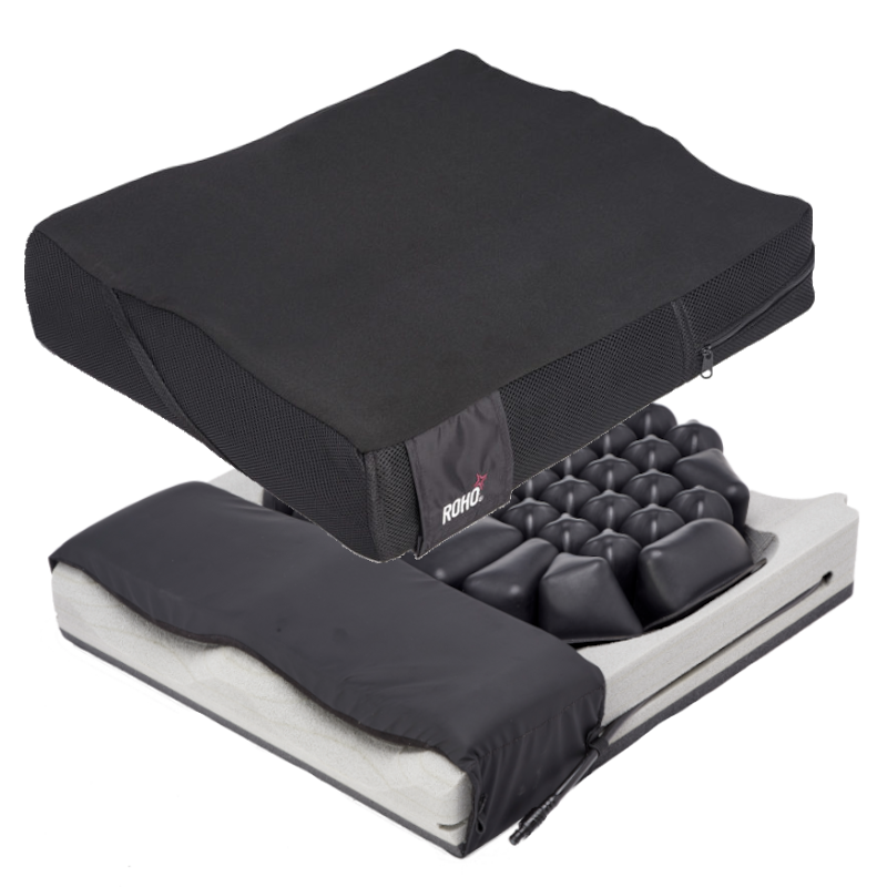 This unique wheelchair cushion combines the stability of a contoured foam base with the skin and tissue protection for which ROHO DRY FLOATATION® cushions are known. The contoured foam base is designed to allow for increased stability for transfers and provides exceptional comfort, positioning and stability.