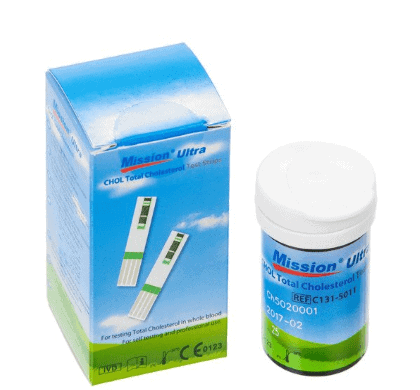Mission Ultra CHOL Total Cholesterol Test Strips for testing Total Cholesterol in whole blood. For self testing or professional use.