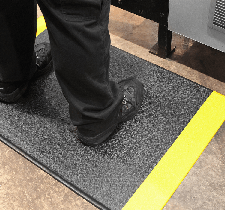 These durable, yet very comfortable mats are manufactured from 100% closed cell PVC foam, providing the right balance of underfoot cushioning and support, while encouraging healthy circulation. Thereby increasing productivity and ultimately reducing pain. Orthomat Safety has a bright yellow, bevelled edge, safety border of 100mm in width. Lead time on some products are 8-12 weeks.