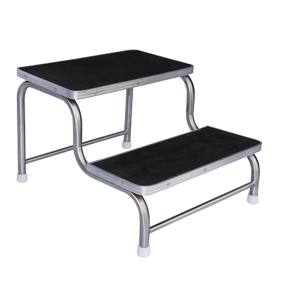 Stationary double step with rubber tops with stainless steel surrounds.