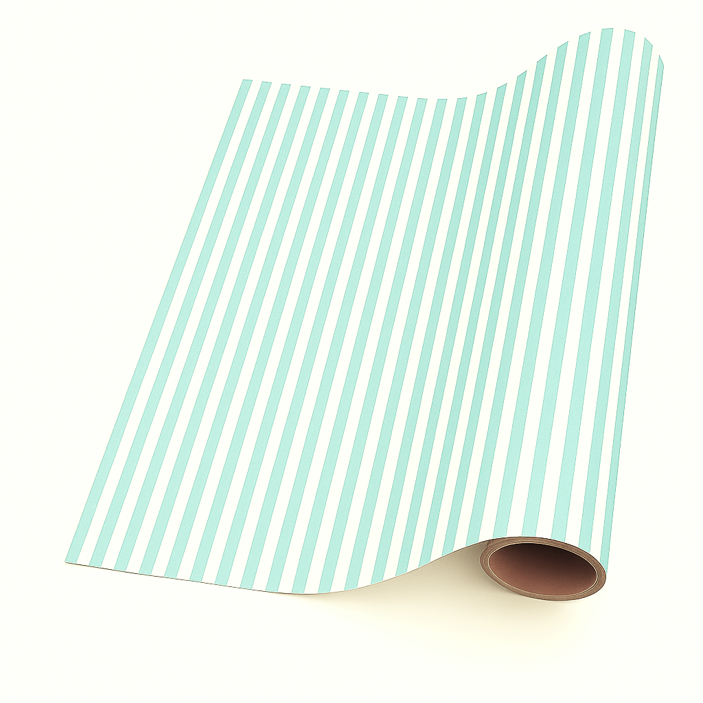 Thin Stripe – Turquoise & White (5m x 50cm). Printed on 75gm econo plus paper.